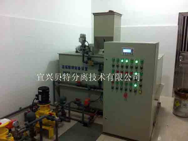 干粉投加時設計有加熱除濕裝置,由plc來控制加熱的溫度,防止藥劑潮濕結塊,影響藥劑的制備濃度,從而影響污泥脫水的效果。